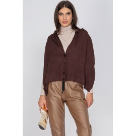 Fine knit wool blend shawl with buttons in Brown Aimelia Br2797
